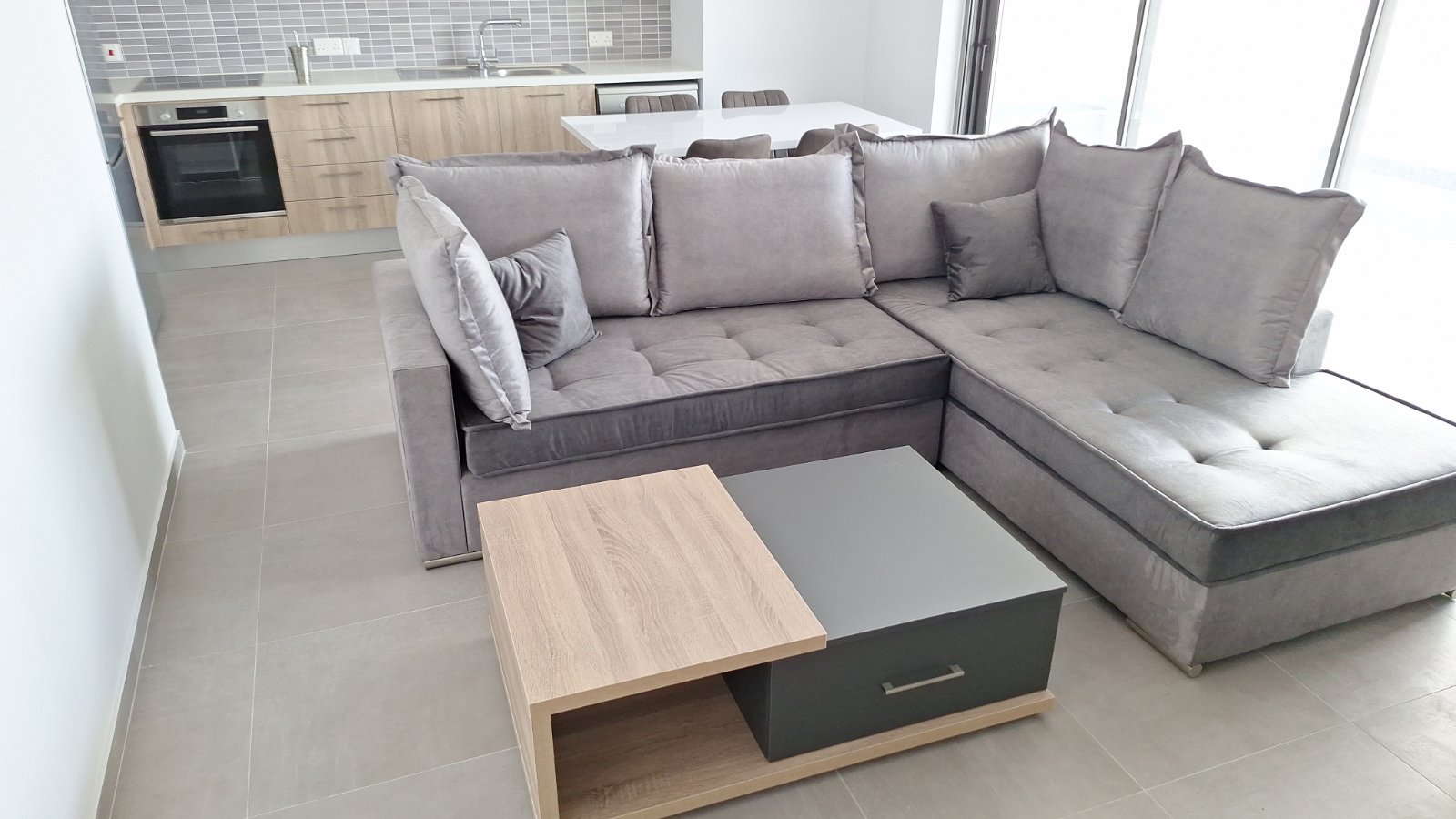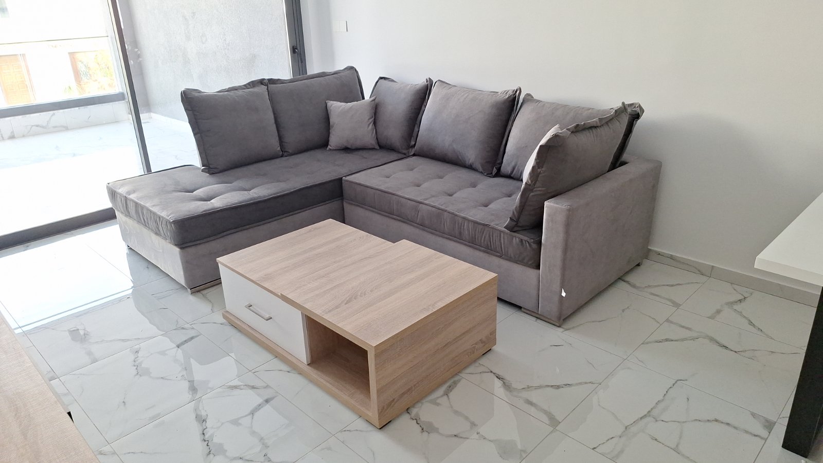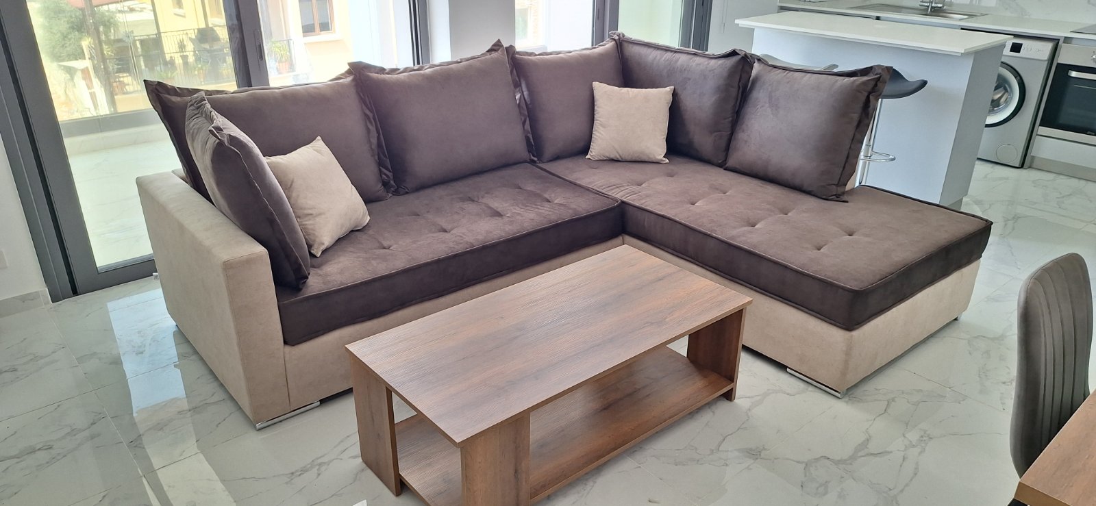 Corner Sofa: Seat cushions adorned with elegant detailing and back cushions featuring charming frills. This sofa not only brings style but also comfort to your space! Explore the flexibility of our corner sofa – the fabric, color, dimensions, and even the orientation of the sofa can be customized to meet your exact needs.